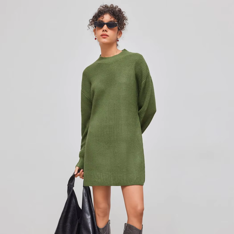 ชุดเดรสสเวตเตอร์ถักสำหรับผู้หญิงชุดเดรสคอกลมหรูหราสำหรับฤดูใบไม้ร่วง