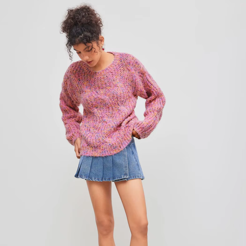 เสื้อสเวตเตอร์ผ้าขนแกะคอกลมของผู้หญิงสีสันสดใสสำหรับฤดูใบไม้ร่วง
